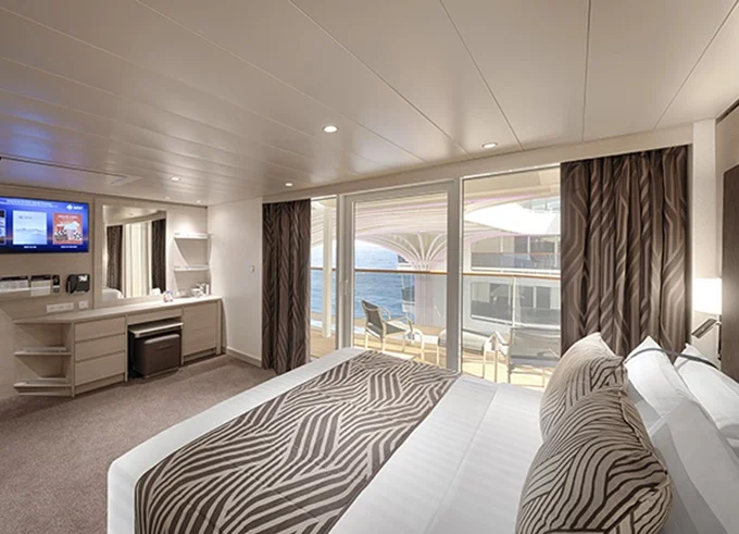 - Ubytovanie v plne vybavenej kajute: vlastná kúpeľňa so sprchou a WC, interaktívna TV, telefón, safe, sušič na vlasy, regulovateľná klimatizácia, minibar (za poplatok). Pripojenie na internet cez Wi-fi (za poplatok)