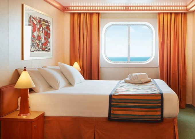 - Ubytovanie v kajute vybranej kategórie. Základné vybavenie: kúpeľňa s WC a sprchovacím kútom, 2 lôžka spojiteľné do manželskej postele, skrine, nočné stolíky, toaletný stolík a stolička, nastaviteľná klimatizácia, interaktívna satelitná TV s plochou obrazovkou, trezor, sušič na vlasy, uteráky a posteľné prádlo, Wi-Fi pripojenie (za poplatok), 24/7 kajutová služba (za poplatok).