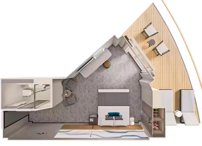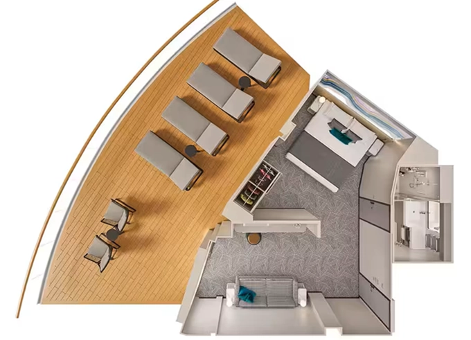 | H3 - The Haven Deluxe Owner's Suite s veľkým balkónom 92-94 m² / balkón 57 - 68 m². 13. - 15. paluba. Max 2-6 osoby. Výhody The Haven. | 19 186 € 9 593 € za osobu | ||