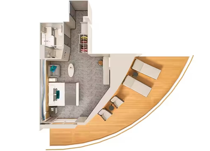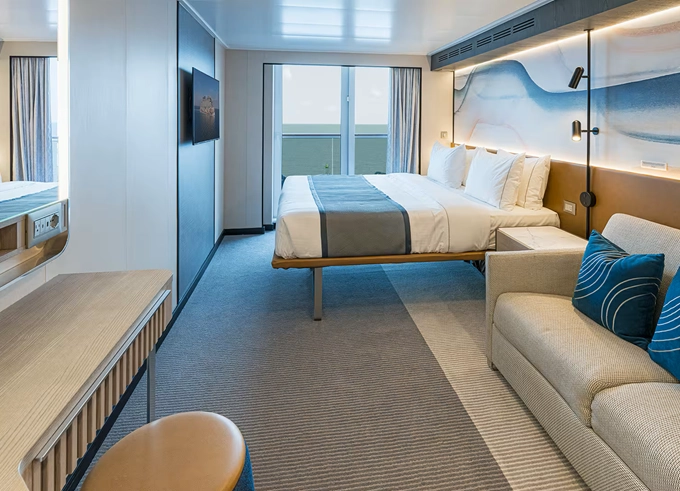 | MB - Club Suite Forward-Facing s balkónom 22 - 25 m² / balkón 7 m². 9. až 13. paluba - vpredu. Max 2 osoby. Výhody Club. | 3 916 € 1 958 € za osobu | ||