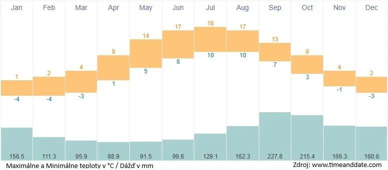 Zrážky padajú v priemere 230 dní v roku. Jarné mesiace sú najsuchšie, zatiaľ čo september a október sú najvlhkejšie.